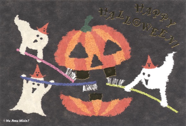 イラスト作家「mushroom」さんの手描き作品!ポストカード☆ハロウィン☆オバケ・女の子・キノコ… |