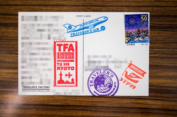 京都・恵文社に今年の夏トラベラーズファクトリーがやってきました。ちょっと遠いけれどこれは絶対行かねば!と足を伸ばし、そこで販売されていたトラベラーズファクトリーオリジナルポストカードを購入。会場ではスタンプが自由に押せたので、スタンプを押し、郵便局でメッセージを書きそれを暑中見舞いとさせていただきました。