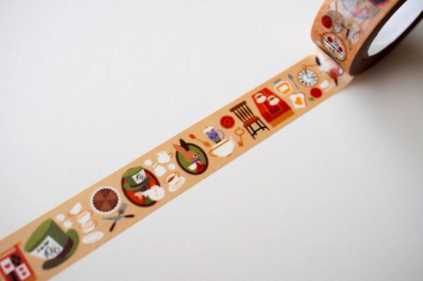 そしてこれはお茶会ということでアリスと時計を持って走るウサギなどが描かれています。